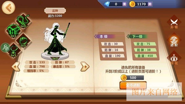 2、游戏中不同装备的属性有所不同,要善于选用。