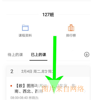 4、打开已上的课界面后向下滑动,然后点击“课程名称”。