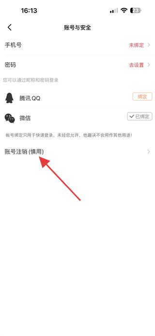 4、在账号与安全页面点击账号注销慎用,按照提示完成账号注销流程即可。