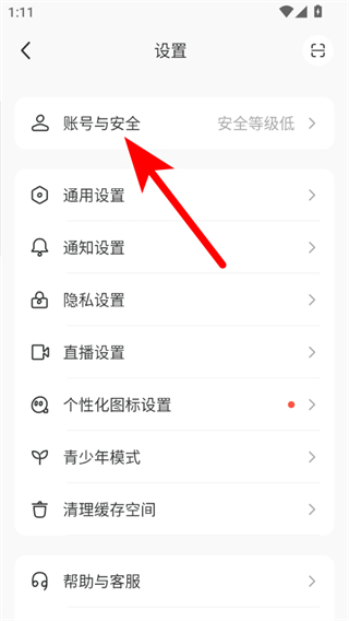 2、在设置页面中找到账号与安全选项并点击,进入账号与安全相关功能页面。